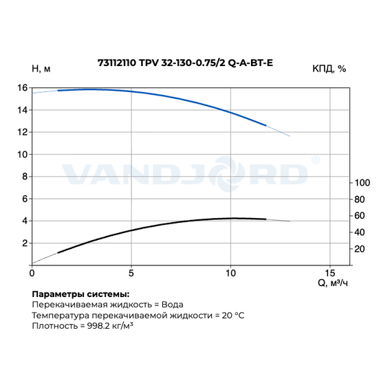 Одноступенчатый насос "ин-лайн" TPV 32-130-0.75/2 Q-A-BT-E VANDJORD 73112110