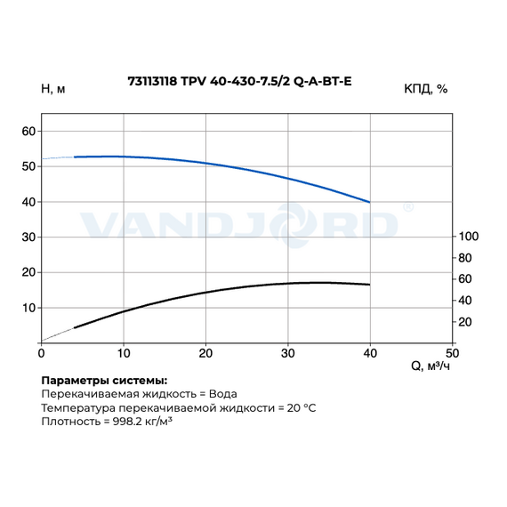 Одноступенчатый насос "ин-лайн" TPV 40-430-7.5/2 Q-A-BT-E VANDJORD 73113118