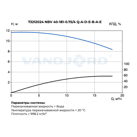 Консольно-моноблочный насос NBV 40-181-0.75/4 Q-A-D-E-B-A-E VANDJORD 73212024