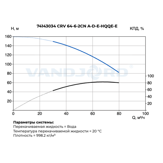Вертикальный многоступенчатый насос CRV 64-6-2CN A-D-E-HQQE-E VANDJORD 74143034