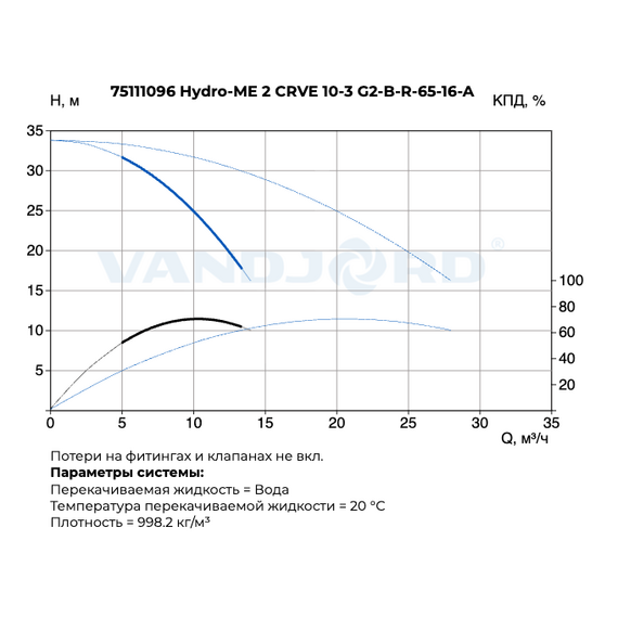 Установка повышения давления Hydro-ME 2 CRVE 10-3 G2-B-R-65-16-A VANDJORD 75111096