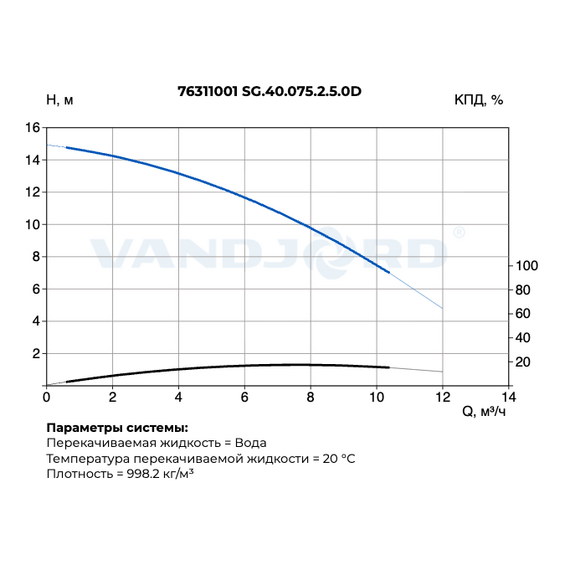 Max глубина погружения:10 м Max напор:15 м Max расход:12 м³/ч Вал:Нерж. сталь Диапазон температуры жидкости:0 .. 40 °C Допустимое давление фланцев:PN 6 / PN 10 Защита электродвигателя:Устройство тепловой защиты Класс изоляции (IEC 85):F Количество полюсов:2 Корпус:Чугун серый Мощность:0.75 кВт Номинальная мощность - P2:0,75 кВт Номинальная скорость:2850 об/мин Номинальное напряжение:3x380 В (50 Гц) Номинальный напор:9,8 м Номинальный расход:8 м³/ч Номинальный ток:2 A Основание для переносного погружного монтажа:В комплекте Подшипник:NSK Положение напорного патрубка:Горизонтальное Потребляемая мощность - P1:1,3 кВт Пусковой ток:10,8 А Рабочее колесо:Чугун (HT200) Размер напорного патрубка:DN 40 Расположение при монтаже:Вертикальное Стандарт трубного присоединения:DIN Стандарт электродвигателя:IEC Степень защиты (IEC 34-5):IP 68 Схема пуска:Прямой (DOL) Температура хранения:-30 .. 60 °C Тип монтажа:Погружной Тип рабочего колеса:С режущим механизмом Шкаф управления 1-м насосом:51541008 Шкаф управления 2-мя насосами:51541011 Cos φ:0,74