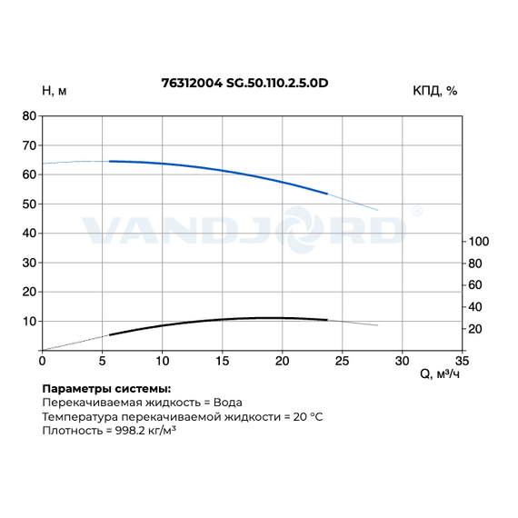 Max глубина погружения:10 м Max напор:64 м Max расход:28 м³/ч Вал:Нерж. сталь Диапазон температуры жидкости:0 .. 40 °C Допустимое давление фланцев:PN 6 / PN 10 Защита электродвигателя:Устройство тепловой защиты Класс изоляции (IEC 85):H Количество полюсов:2 Корпус:Чугун серый Мощность:11 кВт Номинальная мощность - P2:11 кВт Номинальная скорость:2850 об/мин Номинальное напряжение:3x380 В (50 Гц) Номинальный напор:61 м Номинальный расход:15 м³/ч Номинальный ток:22 A Основание для переносного погружного монтажа:В комплекте Подшипник:NSK Положение напорного патрубка:Горизонтальное Потребляемая мощность - P1:13,7 кВт Пусковой ток:150 A Рабочее колесо:Чугун (HT200) Размер напорного патрубка:DN 50 Расположение при монтаже:Вертикальное Стандарт трубного присоединения:DIN Стандарт электродвигателя:IEC Степень защиты (IEC 34-5):IP 68 Схема пуска:Прямой (DOL) Температура хранения:-30 .. 60 °C Тип монтажа:Погружной Тип рабочего колеса:С режущим механизмом Шкаф управления 1-м насосом:51541009 Шкаф управления 2-мя насосами:51541012 Cos φ:0,81