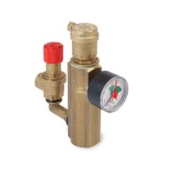 Группа безопасности GIACOMINI R554F (артикул R554FY001). Размер: 1". Группа безопасности для закрытых систем теплоснабжения, состоящая из: латунного корпуса R551E, автоматического воздухоотводного клапана R88I с отсечным клапаном, предохранительного клапана R140R, манометра 0 ÷ 4 бар R225, наполняющего клапана R608D. Применение: для котельных и те