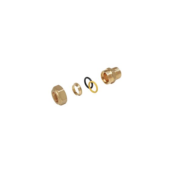 Фитинг прямой с наружной резьбой GIACOMINI R180M (артикул R180MY121) — профессиональная итальянская арматура для соединения металлических труб. Фитинг с наружной резьбой, конусное соединение, двойная кольцевая прокладка, для медных труб.