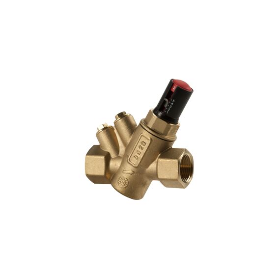 Клапан балансировочный динамический GIACOMINI R206A (артикул R206AY034) — профессиональная итальянская арматура для гидравлической балансировки систем. Динамический балансировочный клапан, со сменным картриджем для поддержания значения расхода. Латунный корпус, подсоединения с внутренней резьбой, гнезда для подключения измерительных штуцеров.Полимерный картридж, съемный, оснащен двойным индикатором (шкала от 1 до 5 и десятичная шкала от 1 до 9) для точной установки значения расхода. Погрешность (в рамках допустимого дифференциального давления): ±5% от декларированного значения расхода или ±2% от максимального значения расхода.Максимальная рабочая температура: 120 °С.Максимальное рабочее давление: 25 бар.