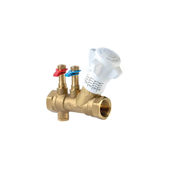 Балансировочный клапан статический GIACOMINI R206B (артикул R206BY005) — профессиональная итальянская арматура для гидравлической балансировки систем. Статический балансировочный клапан со штуцерами для измерения разницы давления (либо без них для кодов R206BY013-R206BY018), внутр.-внутр. резьба.