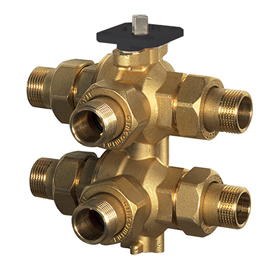 Шестиходовой клапан GIACOMINI R274 (артикул R274Y023) — профессиональная итальянская арматура для смешения и зонального регулирования. Шестиходовой клапан, с отводами с накидной гайкой с наружной резьбой. Для применения в четырехтрубной системе, для систем, функционирующих в режиме отопления и охлаждения помещений.Типовое применение - в системах напольного и потолочного отопления и охлаждения, фанкойлах, и других видах систем.Рабочая температура: 5-90 °C.Номинальное давление: 10 бар.Полное закрытие клапана при установке затвора в положение 45°.