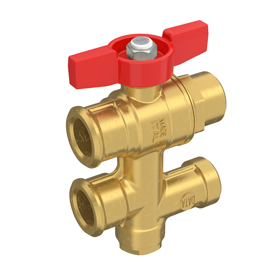 Кран для комплекта для фанкойлов GIACOMINI R280 (артикул R280Y004) — профессиональная итальянская арматура для гидравлической балансировки систем. Запасная часть для комплекта для фанкойлов - комбинированный трехходовой шаровый кран с байпассом