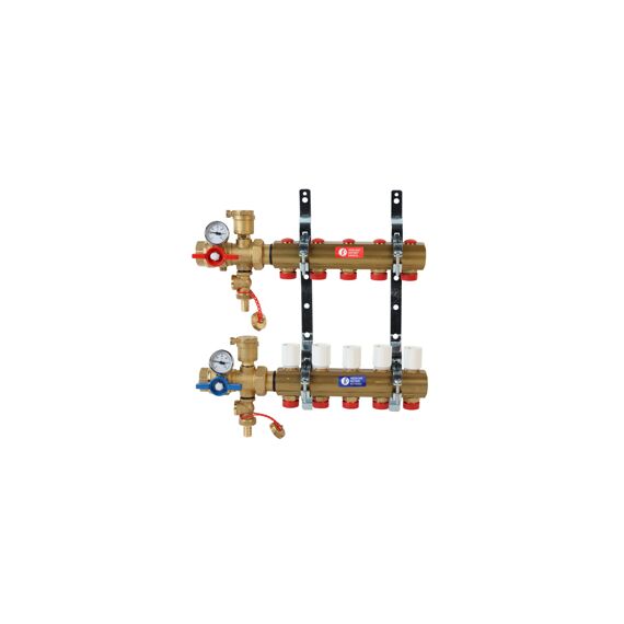 Комплект коллекторного узла GIACOMINI R553DK (артикул R553DK108) — профессиональная итальянская арматура для систем отопления и водоснабжения. Комплект коллекторов с многофункциональными кранами, предварительно собранный. Латунный. Для подключения трубы медной, пластиковой, металлопластиковой, использовать соответствующие адаптеры. C кронштейнами R588 для установки в шкафу R500 (или R588Z для шкафов R500-2).Межосевое расстояние отводов 50 мм.Рабочая температура 5-110°С.Состав:- 1 предварительно собранный коллектор R553D.- 2 многофункциональных крана R269T (содержат две заглушки R592D).