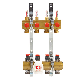 Сборный коллекторный узел с динамическим регулированием расхода GIACOMINI R553FDB (артикул R553FDB145) — профессиональная итальянская арматура для систем отопления и водоснабжения. Сборный коллекторный узел с динамическим регулированием расхода, независимо для каждого индивидуального контура. Состав узла: - 1 коллектор подающий со встроенными отсечными клапанами с расходомерами. - 1 коллектор обратный со встроенными балансировочными динамическими вентилями поддержания расхода, с предварительной настройкой, с рукоятками ручного регулирования и возможностью установки приводов R473/R473M для автоматического регулирования. - кронштейны металлические R588Z. - R558Y001 ключ для отсечных клапанов. - R73PY010 ключ для предварительного регулирования Возможно автоматическое управление контурами используя R478, R478M, R473, R473M, предварительно демонтировав рукоятки. Диапазон установки расхода независимо для каждого контура: 20-160 л/ч. Рабочий диапазон перепада давления: 20-60 кПа. Шкала расходомера 0,4-2,6 л/мин.