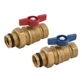 Комплект из двух шаровых кранов R859 с красной и синей рукояткой-бабочкой применяется для систем отопления и водоснабжения. Раздел: Шаровые краны.
