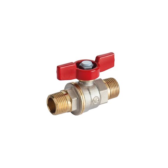 Кран шаровой DADO© с нар./нар. резьбой GIACOMINI R913 (артикул R913X026) — профессиональная итальянская арматура для систем отопления и водоснабжения. Кран шаровой полнопроходной с шаром DADO, резьба наружная/наружная, никелированный, ручка - бабочка красная или жёлтая.