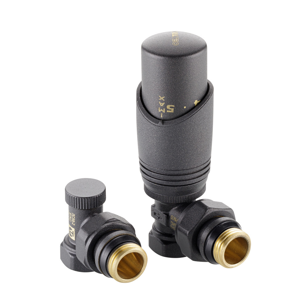 Комплект терморегулирующего оборудования для радиатора угловой, черный применяется для систем радиаторного отопления. Используется в жилых домах и коммерческих зданиях.