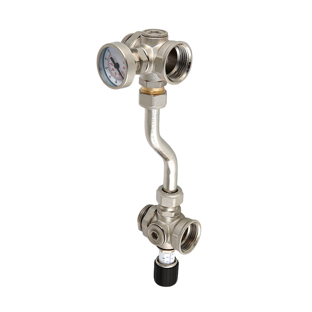 Байпас проходной с перепускным клапаном и термометром применяется для систем водяного теплого пола. Используется в жилых домах и коммерческих зданиях.