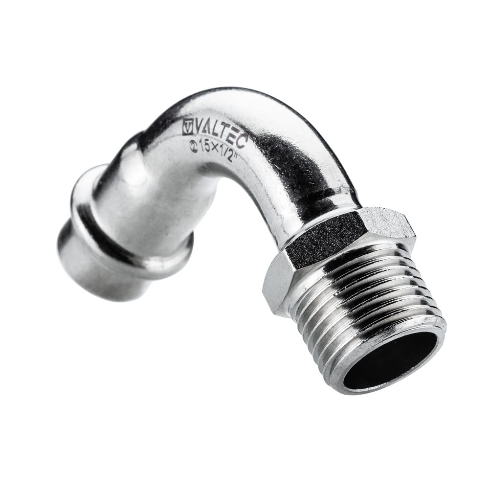 Отвод 90° с переходом на наружную резьбу нержавеющая сталь VALTEC (артикул VTi.957.I.002204) — профессиональное оборудование для инженерных систем. Высокое качество и надёжность.