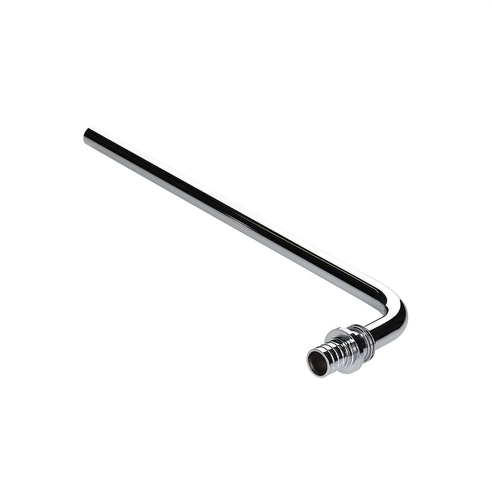 Фитинг аксиальный универсальный – угольник радиаторный с хромированной латунной трубкой с плавным поворотом, короткий VALTEC (артикул VTm.481.PC.002015) — профессиональное оборудование для монтажа труб PE-Xa и PE-Xb. Высокое качество и надёжность.